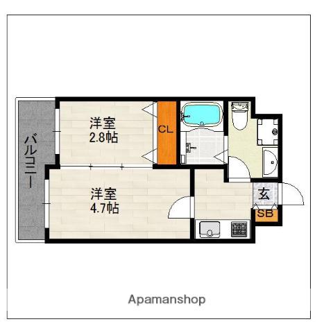 | 間取り | 2K | 専有面積 | 24.77m2 |