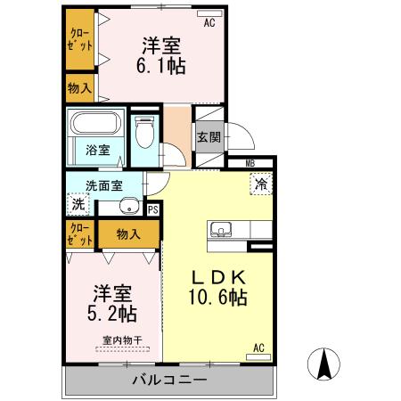 | 間取り詳細 | LDK(10.6帖)、洋室(6.1帖)、洋室(5.2帖) | ||