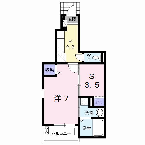 | 間取り詳細 | K(2.8帖)、洋室(7帖)、S(3.5帖) | ||