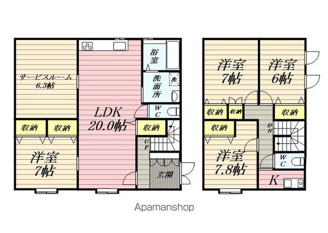 | 間取り詳細 | LDK(20帖)、洋室(7.8帖)、洋室(7帖)、洋室(7帖)、洋室(6帖)、S(6.3帖) | ||