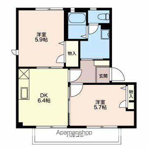 | 間取り詳細 | DK(6.4帖)、洋室(5.9帖)、洋室(5.7帖) | ||