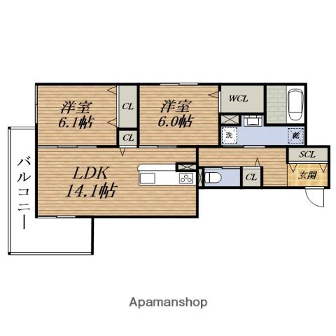 | 間取り詳細 | LDK(14.1帖)、洋室(6.1帖)、洋室(6帖) | ||