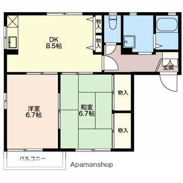 | 間取り詳細 | DK(8.5帖)、和室(6.7帖)、洋室(6.7帖) | ||