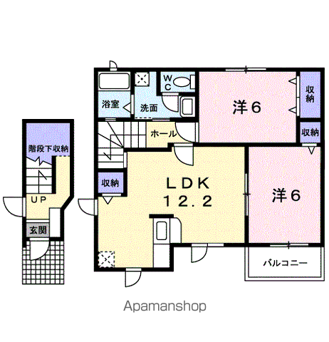 | 間取り詳細 | 洋室(6帖)、洋室(6帖)、LDK(12.2帖) | ||