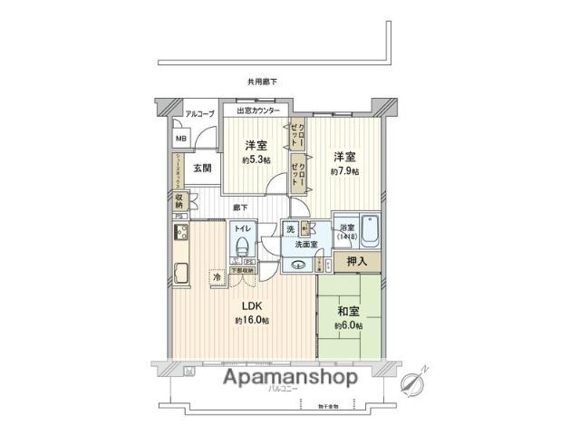 | 間取り詳細 | LDK(16帖)、和室(6帖)、洋室(7.9帖)、洋室(5.3帖) | ||