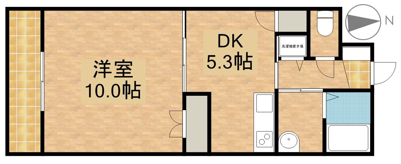 | 間取り詳細 | 洋室(9.5帖)、DK(5.3帖) | ||