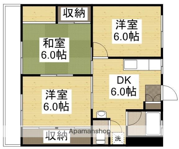 | 間取り詳細 | DK(6帖)、洋室(6帖)、洋室(6帖)、和室(6帖) | ||