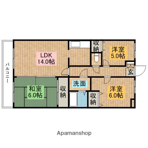 | 間取り詳細 | LDK(14帖)、和室(6帖)、洋室(6帖)、洋室(5帖) | ||