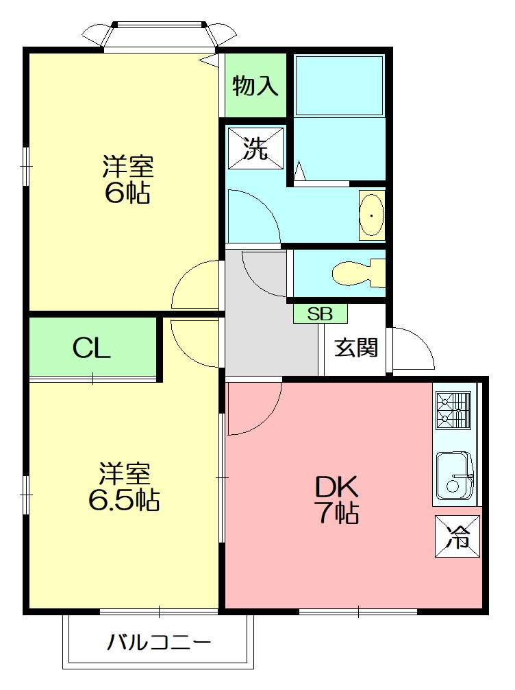 | 間取り詳細 | DK(7帖)、洋室(6帖)、洋室(6.5帖) | ||
