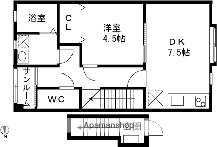 | 間取り詳細 | 洋室(4.5帖)、DK(7.5帖) | ||