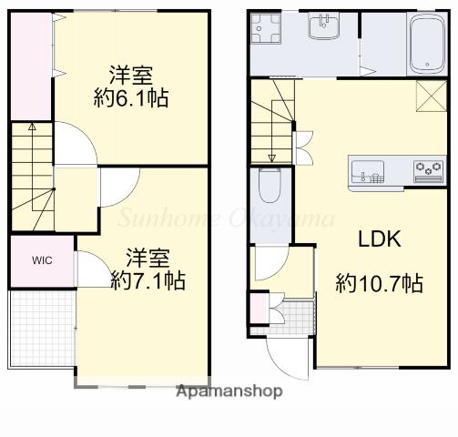 | 間取り詳細 | LDK(10.7帖)、洋室(7.1帖)、洋室(6.1帖) | ||