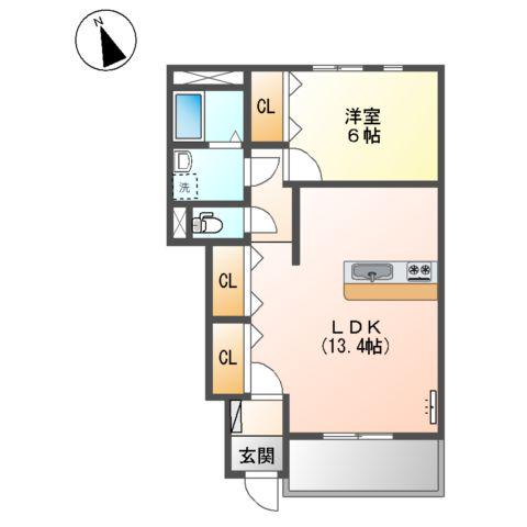 | 間取り詳細 | LDK(13.4帖)、洋室(6帖) | ||