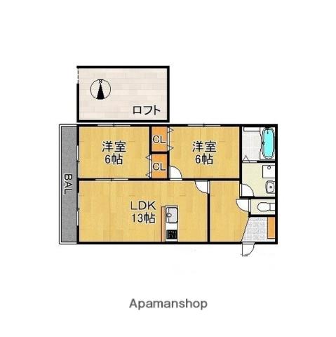 | 間取り詳細 | LDK(13帖)、洋室(6帖)、洋室(6帖) | ||