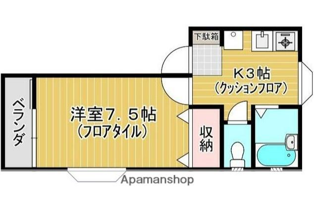 | 間取り詳細 | K(3帖)、洋室(7.5帖) | ||