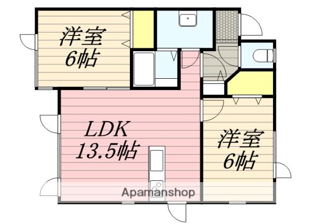 | 間取り詳細 | LDK(13.5帖)、洋室(6帖)、洋室(6帖) | ||