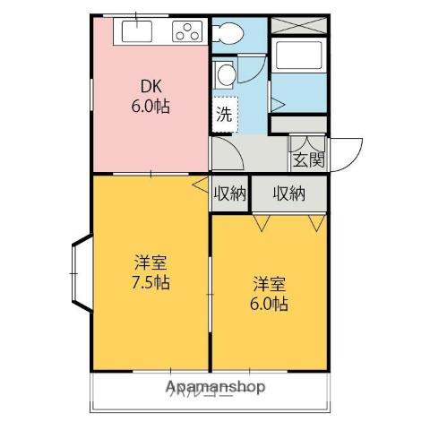 | 間取り詳細 | DK(6帖)、洋室(6帖)、洋室(7.5帖) | ||
