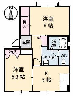 | 間取り詳細 | 洋室(6帖)、K(5帖)、洋室(5.3帖) | ||