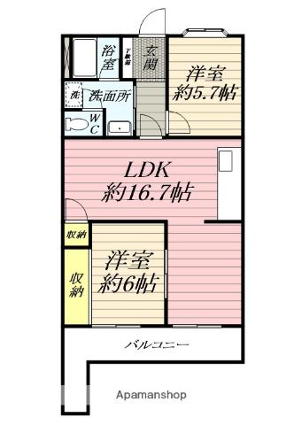 | 間取り詳細 | LDK(16.7帖)、洋室(5.7帖)、洋室(6帖)、S(4.3帖) | ||