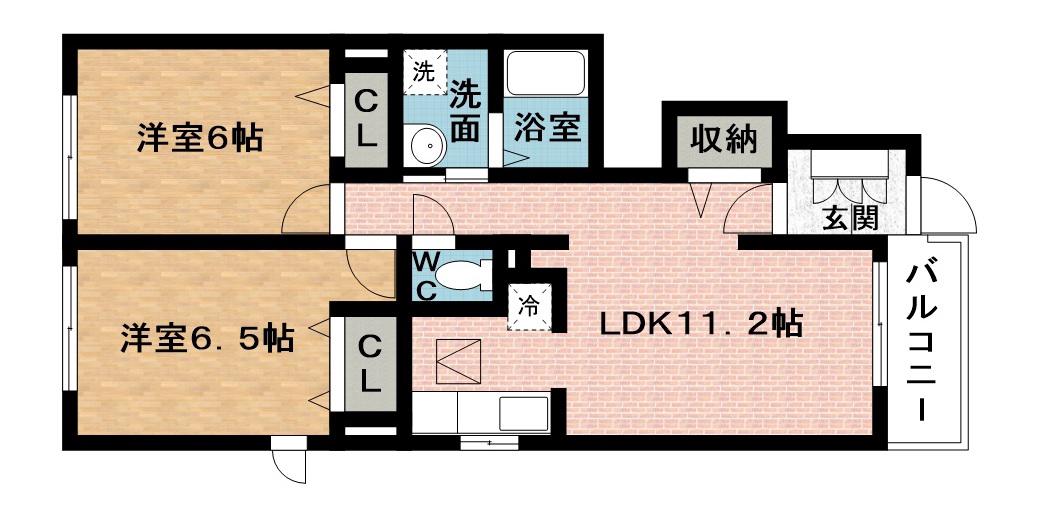 | 間取り詳細 | 洋室(6.5帖)、洋室(6帖)、LDK(11.2帖) | ||