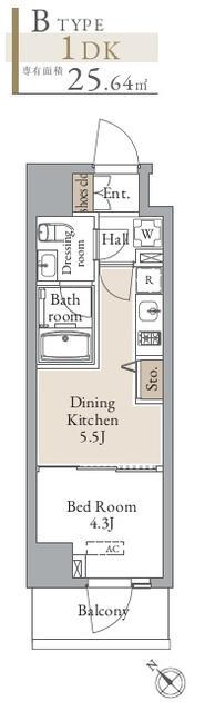| 間取り | 1K | 専有面積 | 26.19m2 |