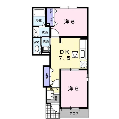 | 間取り詳細 | 洋室(6帖)、洋室(6帖)、DK(7.5帖) | ||