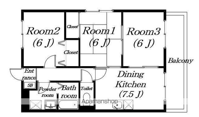 | 間取り詳細 | DK(7.5帖)、洋室(6帖)、洋室(6帖)、和室(6帖) | ||