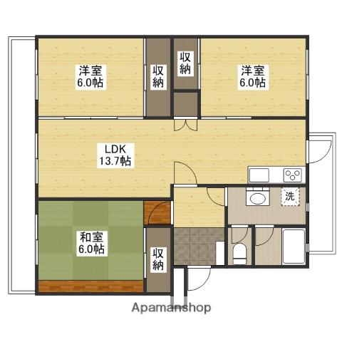 | 間取り詳細 | LDK(13.7帖)、洋室(6帖)、洋室(6帖)、和室(6帖) | ||