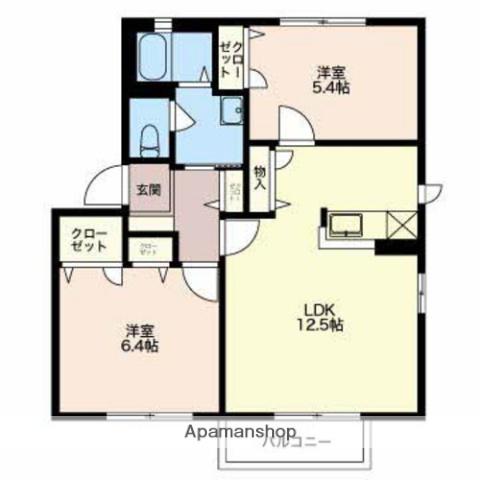 | 間取り詳細 | 洋室(5.4帖)、洋室(6.4帖)、LDK(12.5帖) | ||