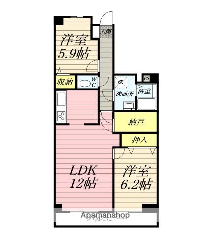 | 間取り詳細 | LDK(12帖)、洋室(6.2帖)、洋室(5.9帖) | ||