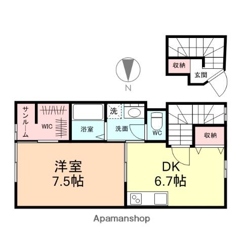 | 間取り詳細 | DK(6.7帖)、洋室(7.5帖) | ||