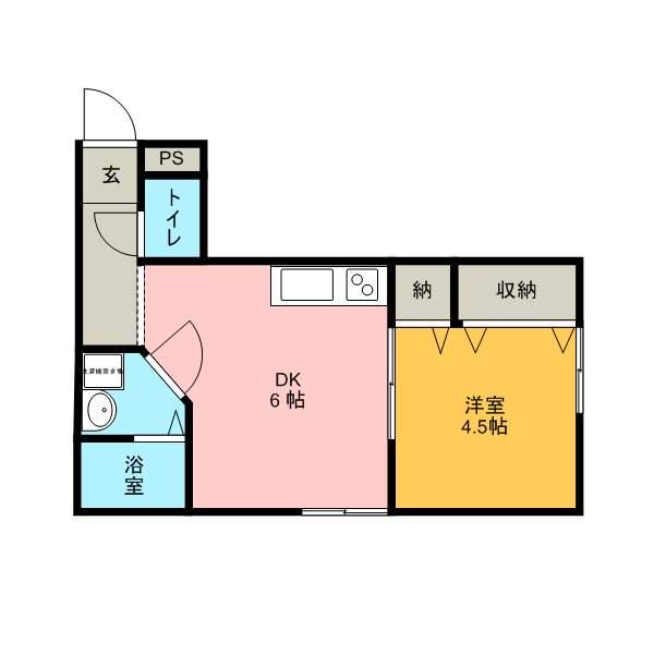| 間取り詳細 | 洋室(4.5帖)、DK(6帖) | ||