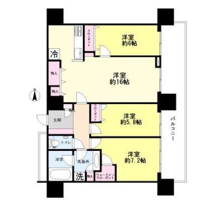 | 間取り詳細 | LDK(16帖)、洋室(7.2帖)、洋室(6帖)、洋室(5.8帖) | ||