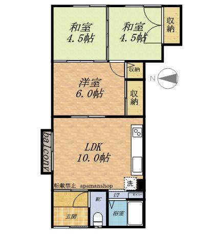 | 間取り詳細 | LDK(10帖)、和室(6帖)、和室(4.5帖)、和室(4.5帖) | ||