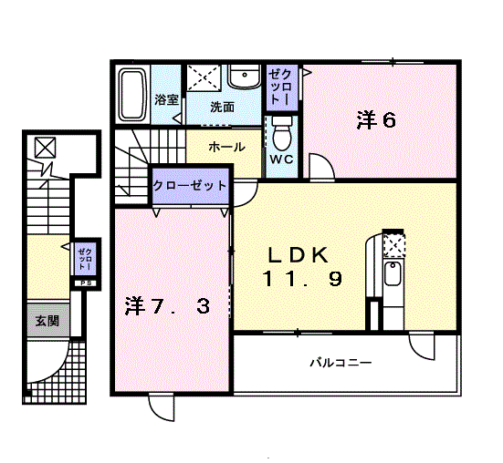 | 間取り詳細 | 洋室(6帖)、洋室(7.3帖)、LDK(11.9帖) | ||