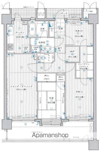 | 間取り詳細 | 洋室(4.2帖)、洋室(7.6帖)、和室(6帖)、LD(11.4帖)、K(4.2帖) | ||