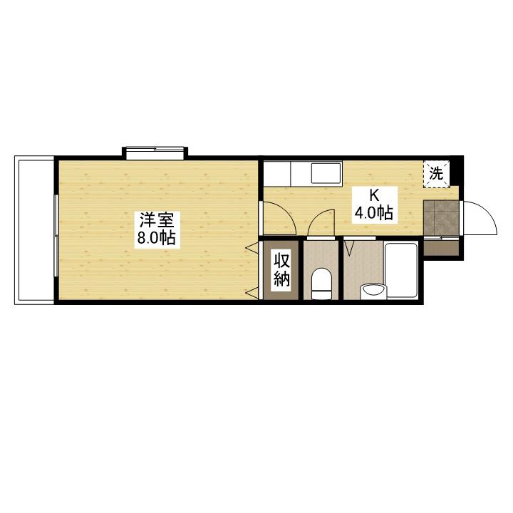 | 間取り詳細 | 洋室(8帖)、K(4帖) | ||