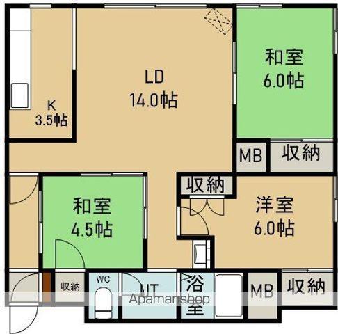 | 間取り詳細 | LD(14帖)、K(3.5帖)、洋室(6帖)、和室(6帖)、和室(4.5帖) | ||