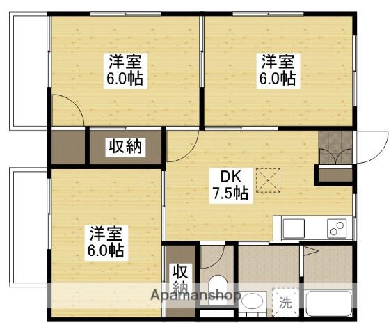 | 間取り詳細 | DK(7.5帖)、洋室(6帖)、洋室(6帖)、洋室(6帖) | ||