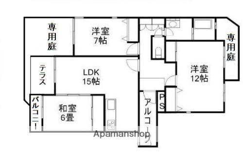 | 間取り詳細 | LDK(15帖)、和室(6帖)、洋室(7帖)、洋室(12帖) | ||