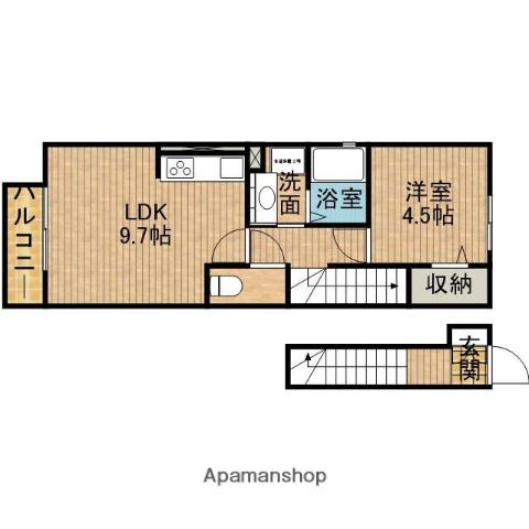 | 間取り詳細 | LDK(9.7帖)、洋室(4.5帖) | ||