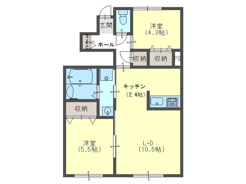| 間取り詳細 | LD(10.5帖)、K(2.4帖)、洋室(5.5帖)、洋室(4.3帖) | ||