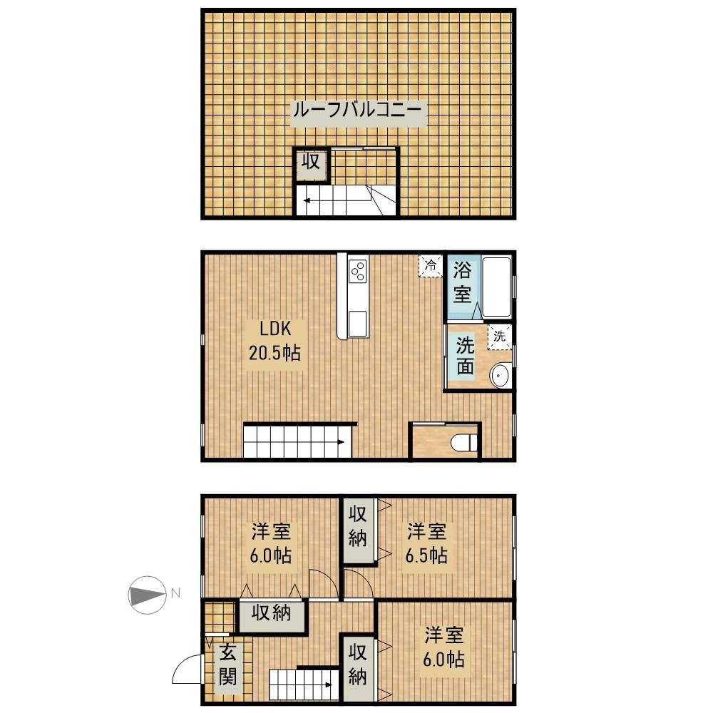 | 間取り詳細 | 洋室(6帖)、洋室(6.5帖)、洋室(6帖)、LDK(20.5帖) | ||