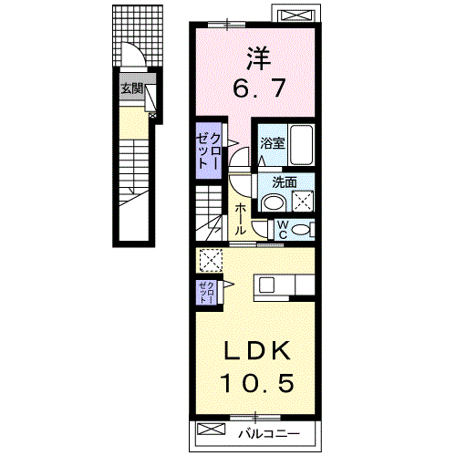 | 間取り詳細 | 洋室(6.7帖)、LDK(10.5帖) | ||
