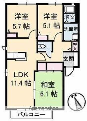 | 間取り詳細 | 和室(6.1帖)、洋室(5.7帖)、洋室(5.1帖)、LDK(11.4帖) | ||