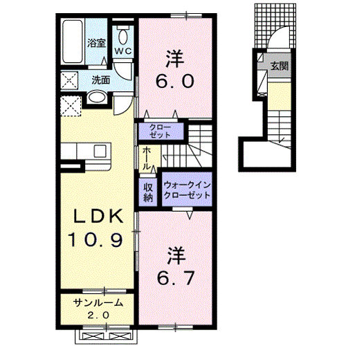 アパート メロディB(2LDK/2階) | |||||||