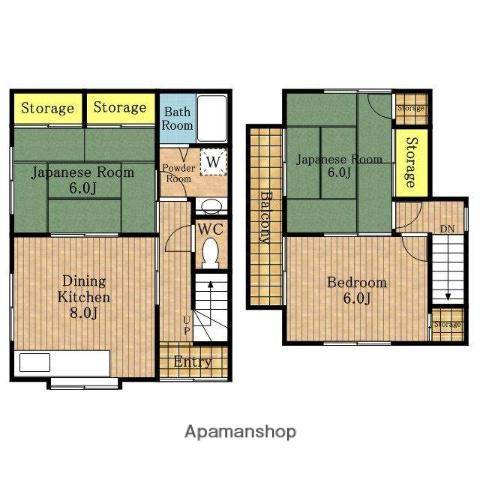 | 間取り詳細 | DK(8帖)、和室(6帖)、洋室(6帖)、洋室(6帖) | ||