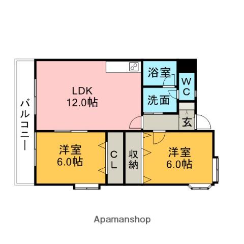 | 間取り詳細 | LDK(12帖)、洋室(6帖)、洋室(6帖) | ||
