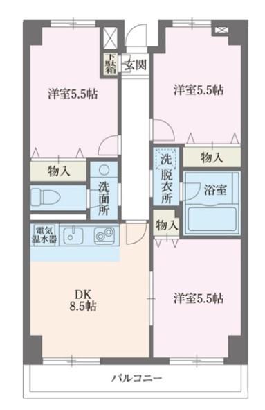 | 間取り詳細 | 洋室(5.5帖)、洋室(5.5帖)、洋室(5.5帖)、DK(8.5帖) | ||
