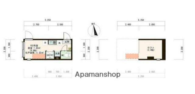 | 間取り | ワンルーム | 専有面積 | 11.55m2 |