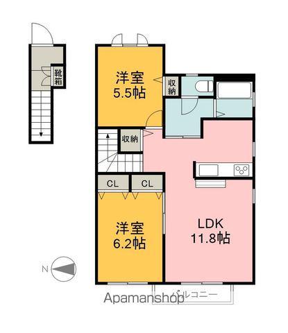 | 間取り詳細 | LDK(11.8帖)、洋室(6.2帖)、洋室(5.5帖) | ||